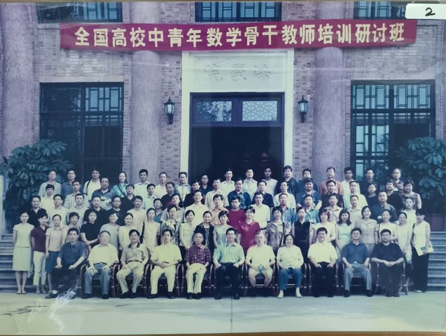 第一排:左1郝志峰(时任华南理工数学系主任,后任汕头大学校长);左2汪国强(时任全国工科数学课指委副主任);右3谢国瑞教授;右4王萼芳(北京大学教授);右5肖树铁(时任清华大学数学系主任)。
