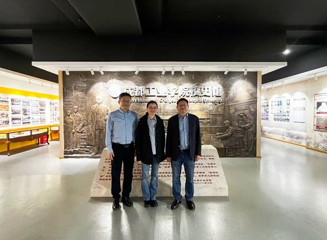调研团队还前往西南财经大学、成都工业学院开展调研。西南财经大学档案馆馆长金元平、副馆长张红霞、校史科科长罗迪陪同调研团队参观校史馆,详细介绍了学校校史大纲编写、展陈布局、设计理念、宣教运维及数字化展示等工作情况。该校依托丰富的档案文献、珍贵的实物档案,结合现代化展陈技术,生动再现了百年办学历程与深厚文化底蕴,为我校校史馆建设提供了宝贵参考;成都工业学院图书馆原馆长王进鑫引导调研团队参观校史馆、陈毅纪念馆,重点介绍了学校在校史馆空间规划、实物征集、场景化展陈及运营管理等方面的创新举措,学习其在校史资源活化利用方面的有效经验。